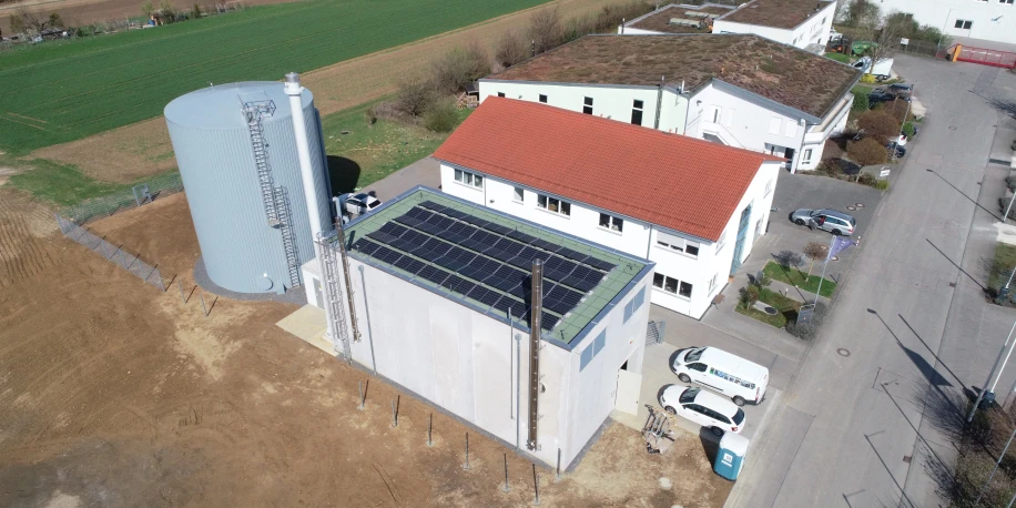 The heat supplies the new heating network and also can be banked temporarily in the storage unit. Two reserve boilers, one in the power plant and one off site, complete the new installations. The solar installation on the roof of the building and the 50 kW CHP unit produce power for in-house use.